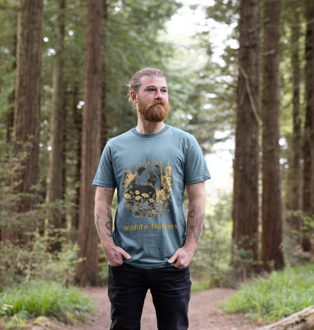 Certified Organic Cotton t-shirt, 155g/m2. Wash cool, hang dry. GM free. Not tested on animals. Does not contain animal-derived products. Printed with low waste printing tech. Made in a renewable energy powered factory audited for a wide range of social and sustainability criteria.