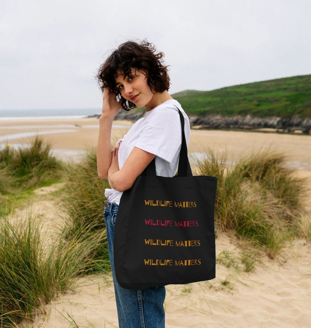 Our Wildlife Matters tote bag has a classic style and is made from organic cotton with a premium look and feel. These lightweight tote bags are perfect for gym, work, and everyday shopping. They are surprisingly durable and can be folded up small enough to fit in your pocket. Available in Black or Natural